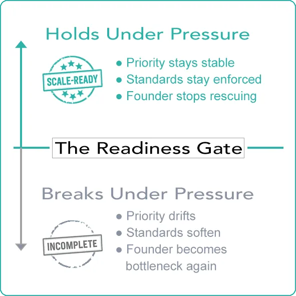 The Readiness Gate is a six-week behavioral filter that shows whether your leadership can actually support scale—before you invest more time, money, or systems.